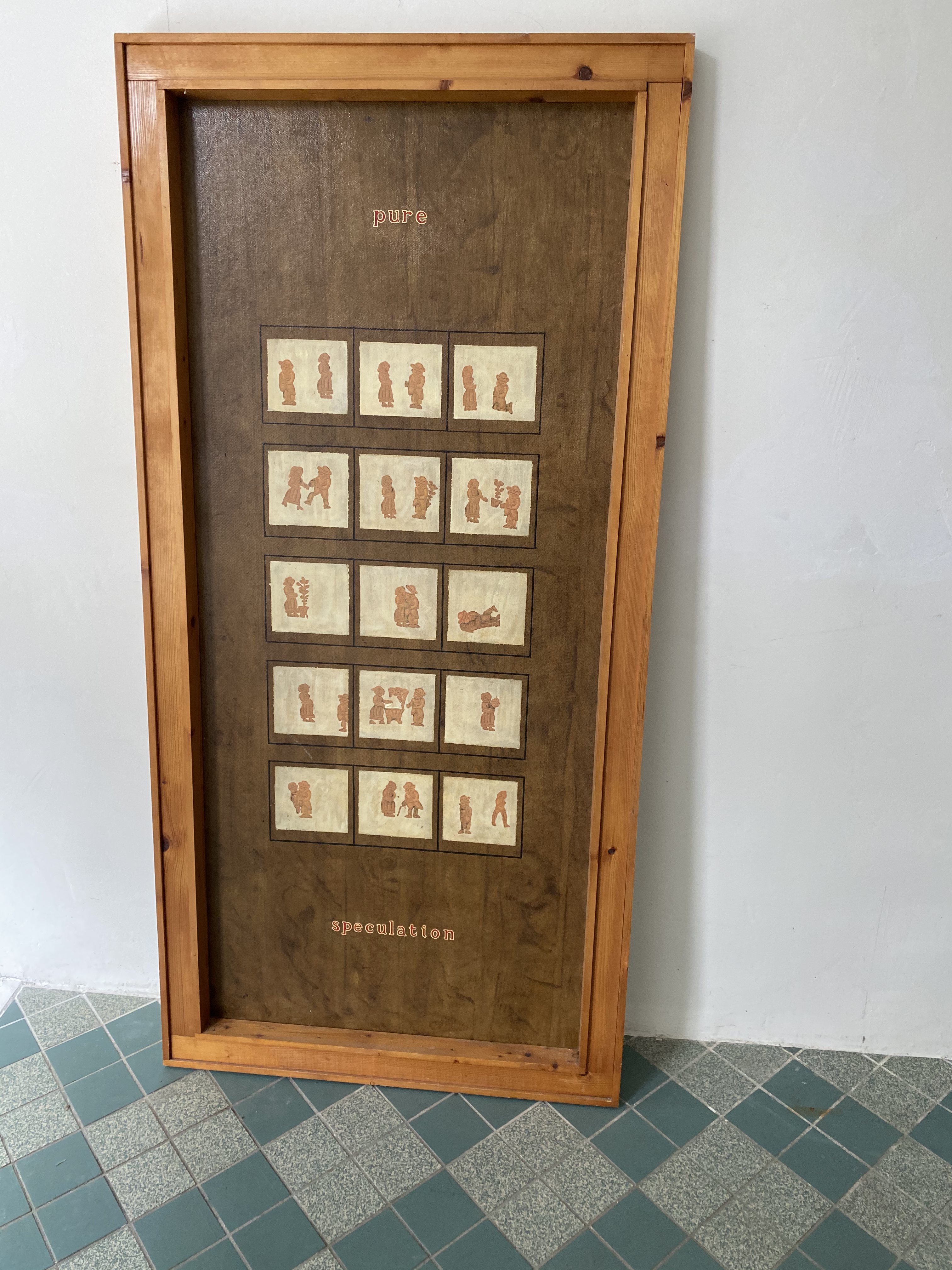 We hebben vrij veel tegels in onze collectie. Sommige zijn echt heel oud, andere nog amper een eeuw oud. Tegels illustreren verhalen. Soms gaat dat aan de hand van symbolen, vaak beelden ze bekende taferelen af, zoals landschappen, molens, boerderijen of dieren. De verhalen maken we er dus zelf bij. Ook in kunstwerken kun je het idee van tegels tegenkomen. We hebben een aantal van deze kunstwerken in onze collectie. Daarmee openen we dan ook binnenkort onze winkel.