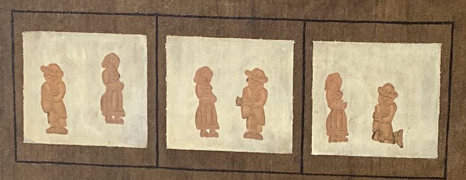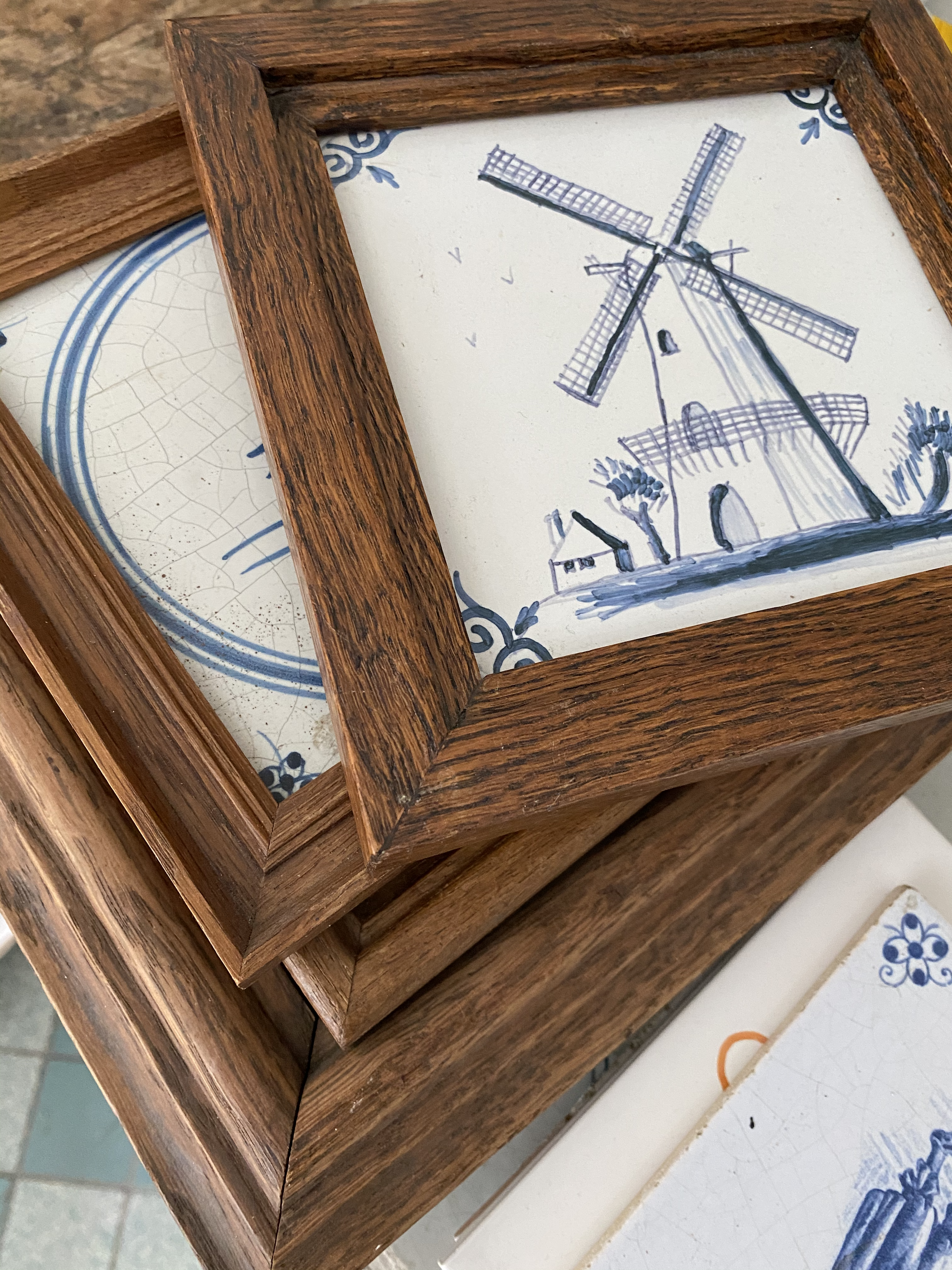 We hebben vrij veel tegels in onze collectie. Sommige zijn echt heel oud, andere nog amper een eeuw oud. Tegels illustreren verhalen. Soms gaat dat aan de hand van symbolen, vaak beelden ze bekende taferelen af, zoals landschappen, molens, boerderijen of dieren. De verhalen maken we er dus zelf bij. Ook in kunstwerken kun je het idee van tegels tegenkomen. We hebben een aantal van deze kunstwerken in onze collectie. Daarmee openen we dan ook binnenkort onze winkel.