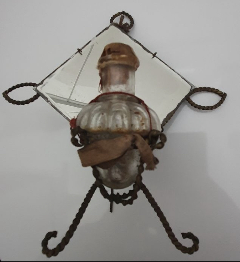 Onze meest bijzondere lamp is natuurlijk die oude olielamp met grote spiegel.