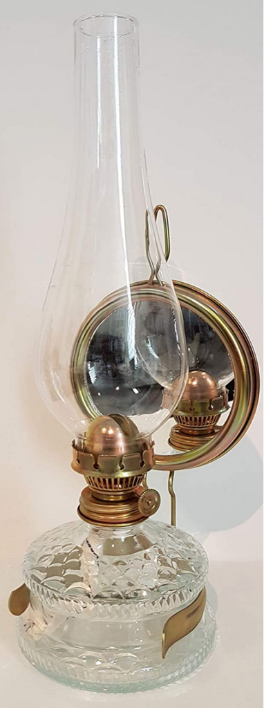 Wij vermoeden dat het niets met parfum te maken heeft, maar een interessante variatie op een thema is: de olielamp met spiegel. De spiegel is dan bedoeld om de lichtopbrengst veel groter te maken. Een beetje zoals de kopspiegellamp dat doet, een gloeilamp met opgebrachte spiegel, die bijvoorbeeld in een bureaulamp extra veel licht geeft. We zijn ook op zoek gegaan naar een eigentijds (vintage) exemplaar en een exemplaar met een zelfde soort spiegel, maar dan een gloeilamp in plaats van een olielamp.